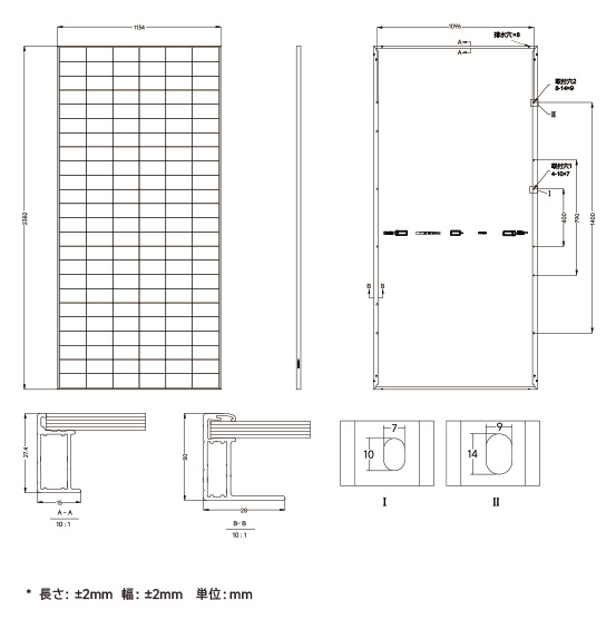 | 出力ケーブル | TüV 1×4mm², (+)300mm, (-)200mm ガイドケーブル長は顧客の要求に基づきオーダーメイド可 |