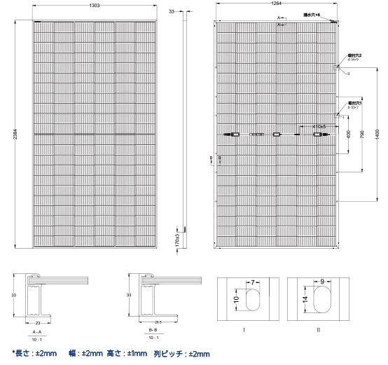 | 最大出力(Pmax/W) | 710 | 715 | 720 | 725 | 730 | 735 | 740 |