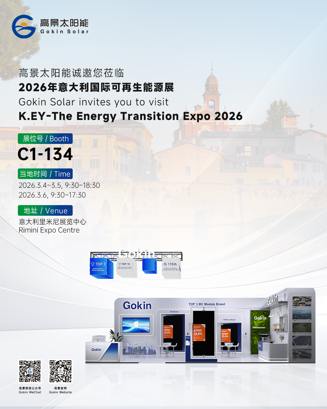 KEY-The Energy Transition Expo 由知名主办方ITALIAN EXHIBITION GROUP S.P.A组织举办,每年一届,是欧洲第二大能源展,也是覆盖范围最全知名度最高的可再生能源展览会。